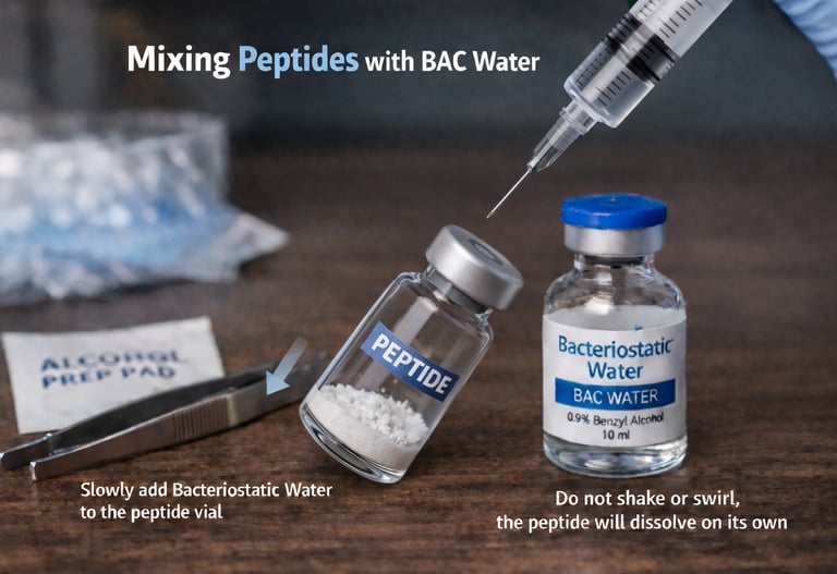 Allow both the peptide vial and the BAC water to reach room temperature before mixing.